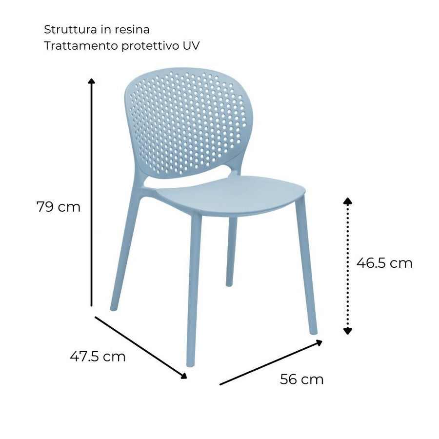 Set 4 Sedie da Giardino 56x47,5x79,5 cm Lolly Azzurre