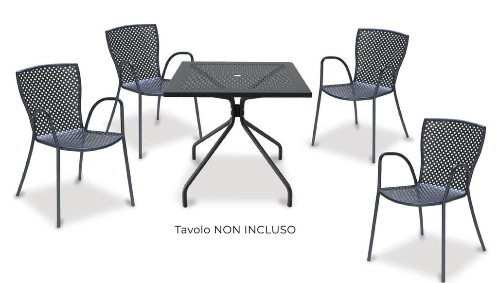 Lot de 4 chaises de jardin 56x62x84 cm en acier avec accoudoirs RD Italia Sonia Anthracite