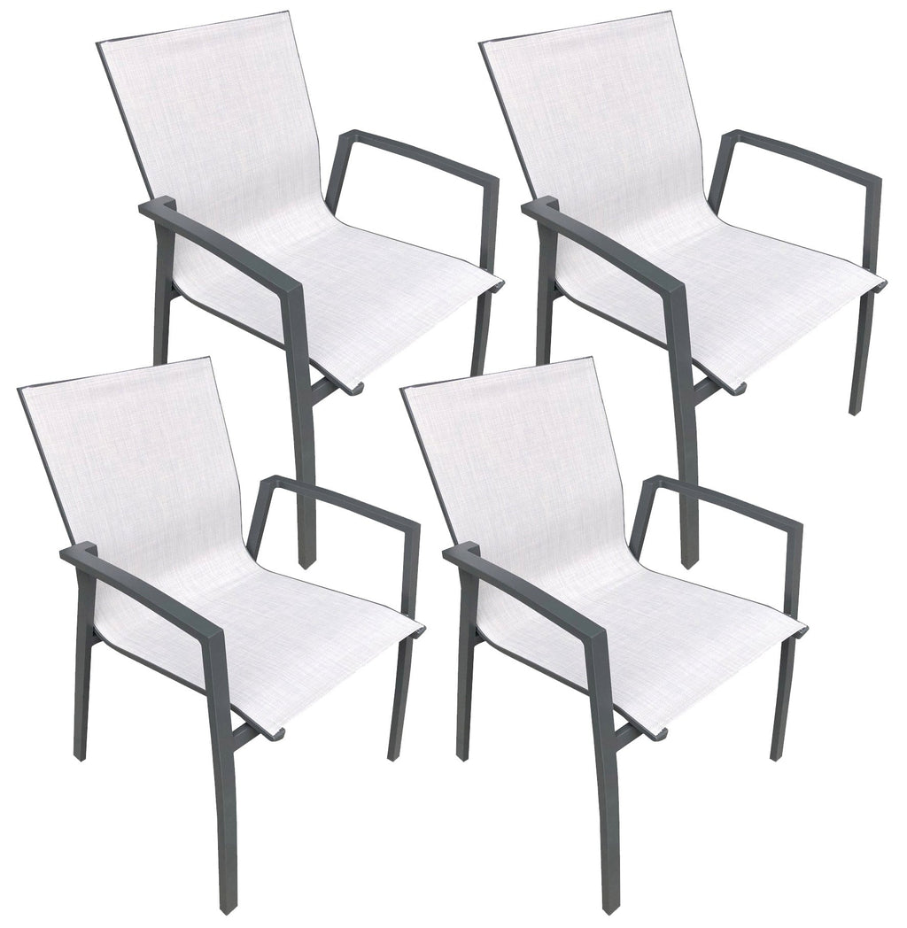 Lot de 4 Chaises de Jardin 59x57x88 cm en Aluminium et Textilène Gris