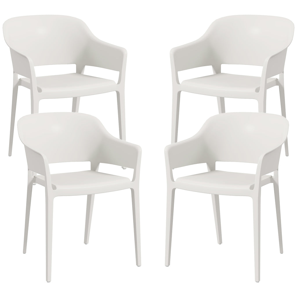 Set 4 Sedie da Giardino Impilabili con Braccioli e Schienale Alto 56x54,5x77,5 cm in Plastica Bianco