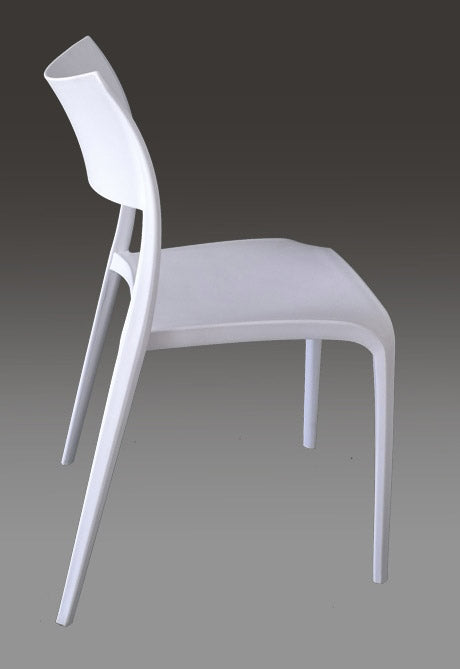 Chaise modèle Riccione, robuste et fonctionnelle, conçue pour répondre à tous les besoins d'ameublement intérieur, sans toutefois négliger son utilisation possible en extérieur.
