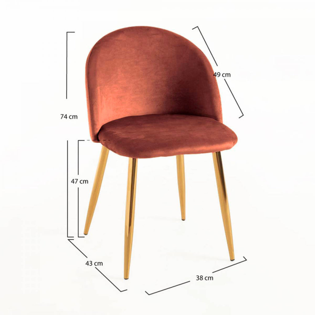 Set 4 Sedie Imbottite 38x43x74 cm in Vellluto Velvet Bronzo e Oro