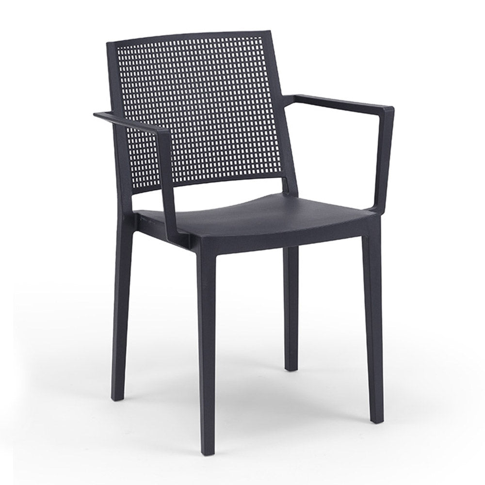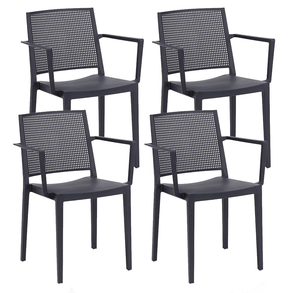 Lot de 4 Chaises Empilables 81x57x56 cm avec Accoudoirs en Polypropylène et Fibre de Verre Porto Anthracite