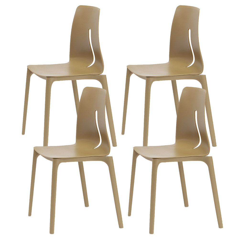 Set 4 Chaises Empilables 85x50x51 cm en Polypropylène et Fibre de Verre Lisbon Camel
