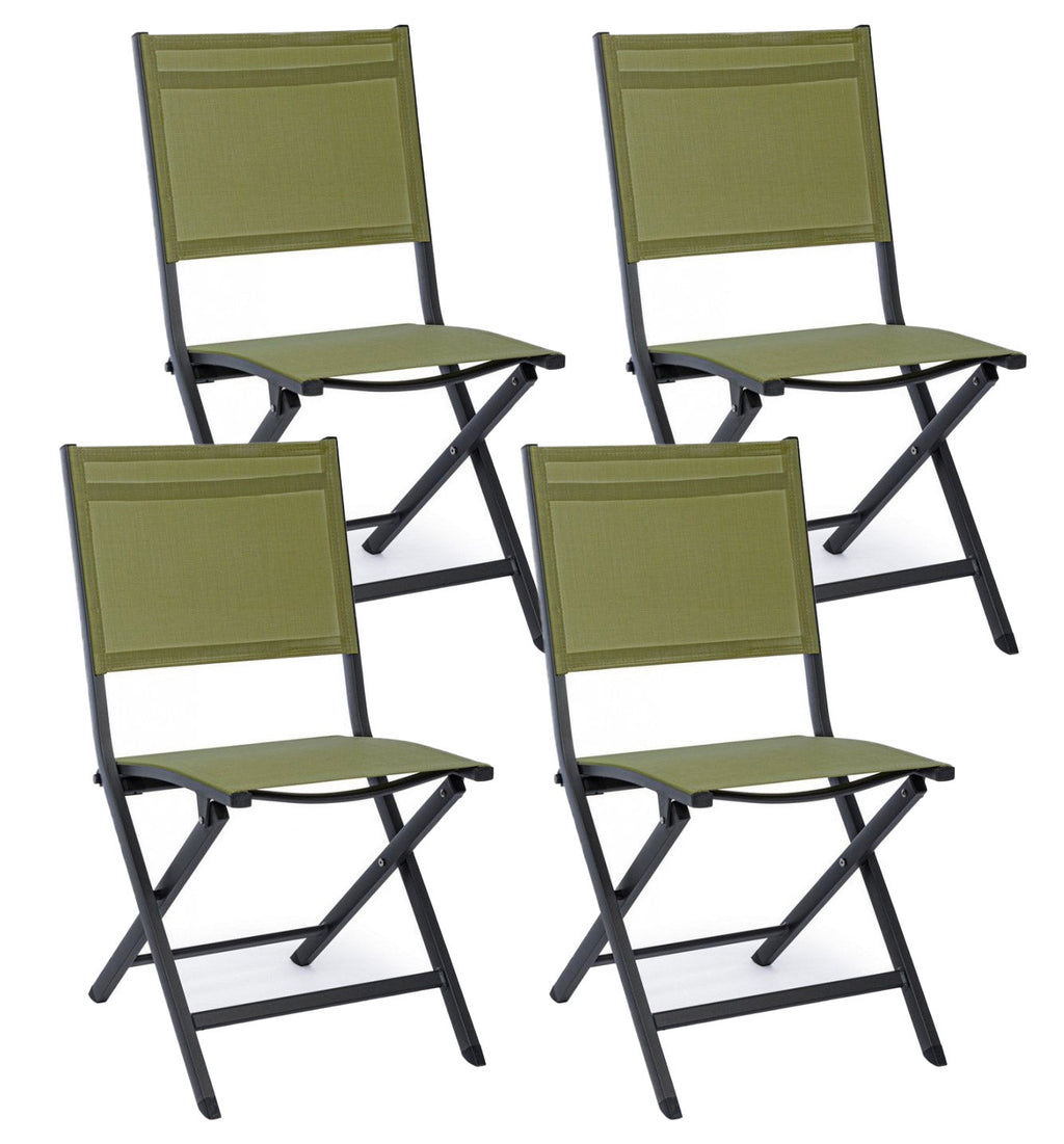 Lot de 4 chaises de jardin pliantes 47x57x88h cm Elin anthracite et vert