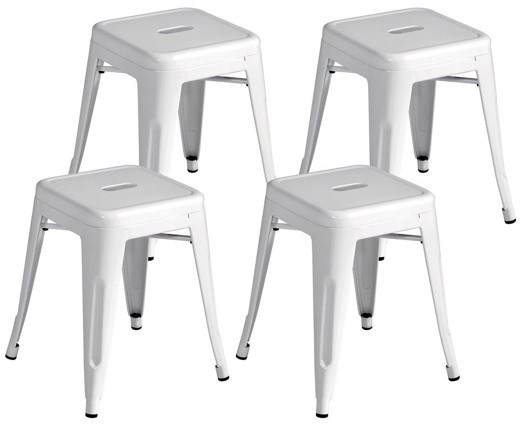 Lot de 4 Tabourets Bas Empilables 39x39x46 cm en Tôle Galvanisée Ivoire