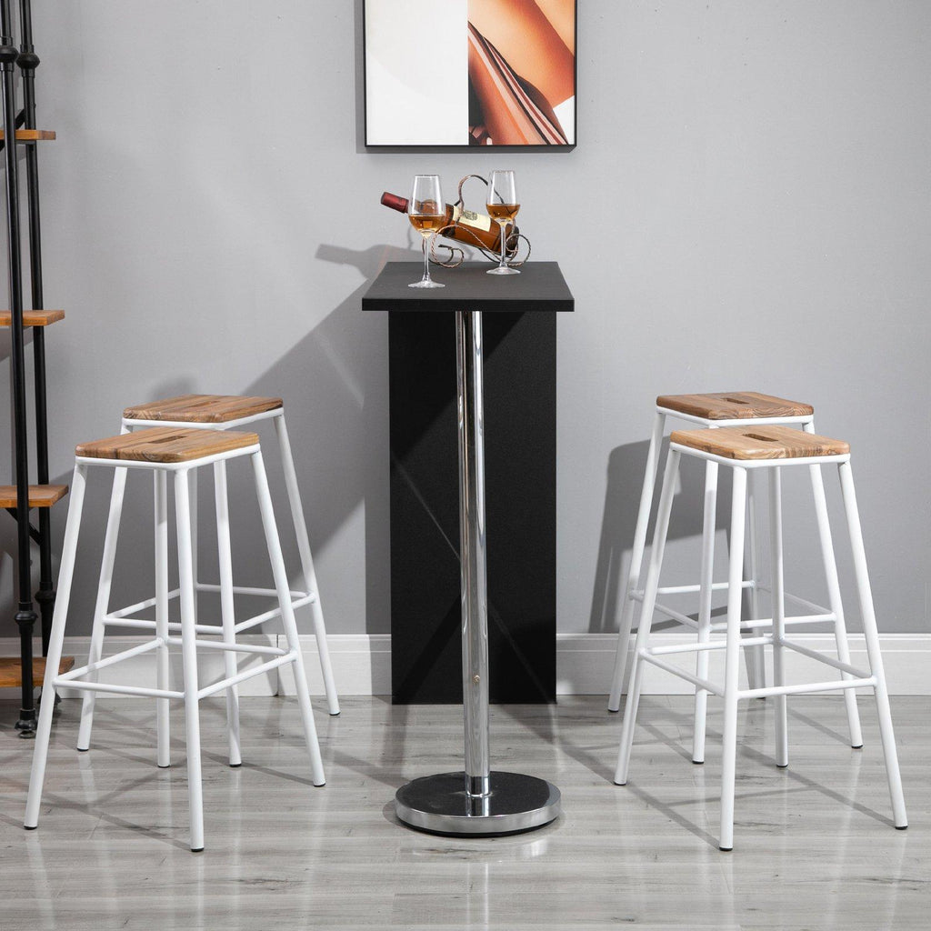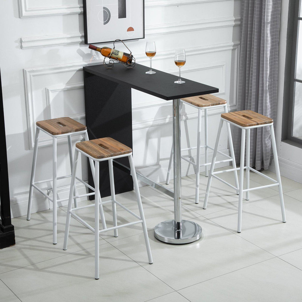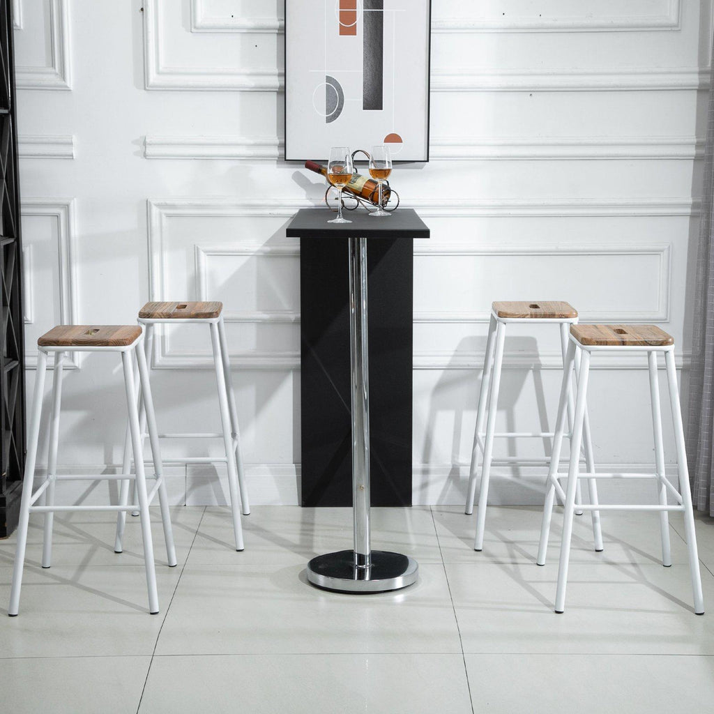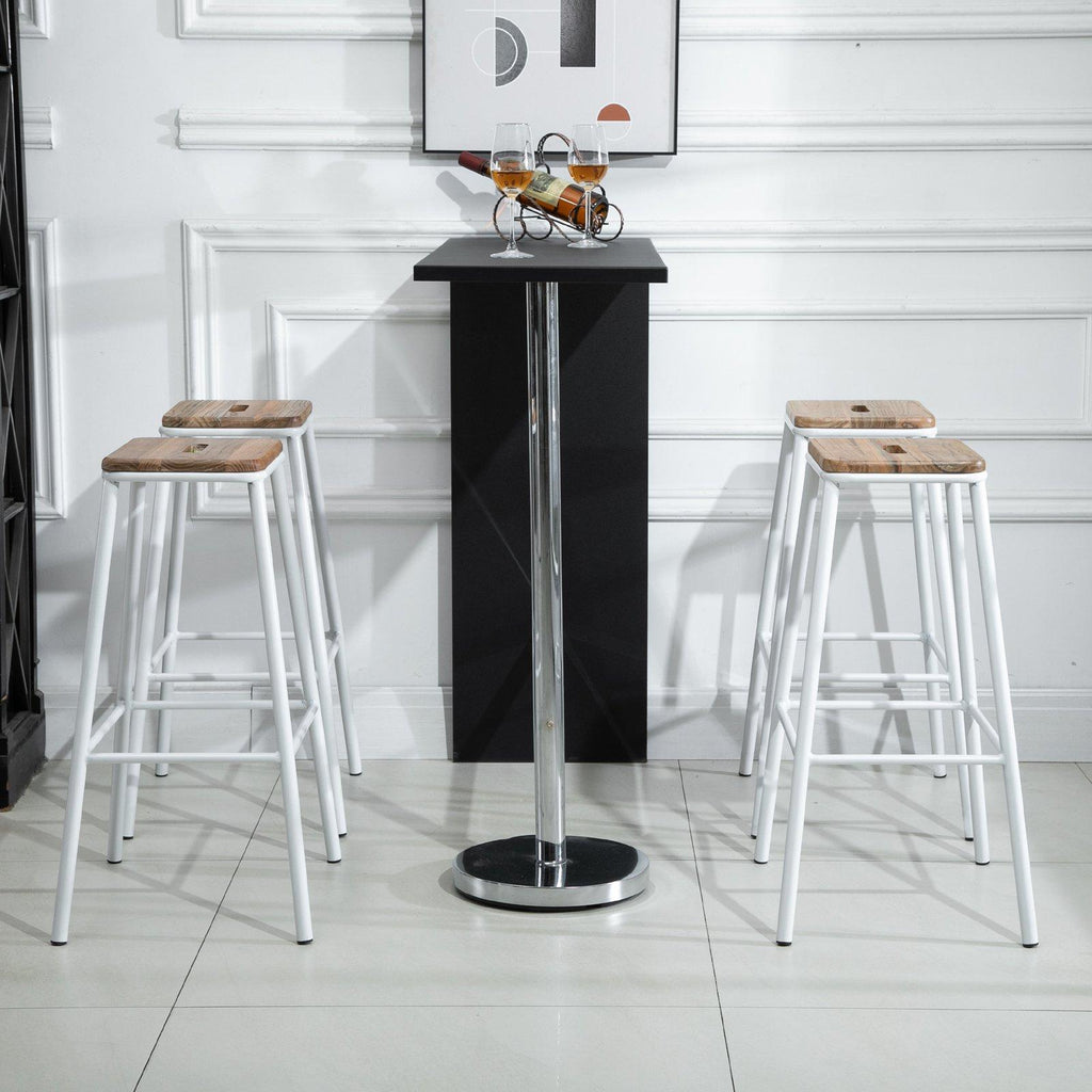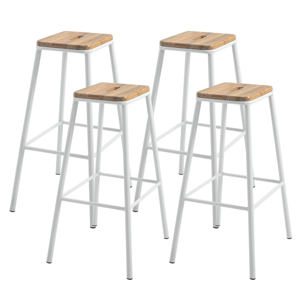 Lot de 4 Tabourets de Bar Hauts en Acier Blanc et Bois