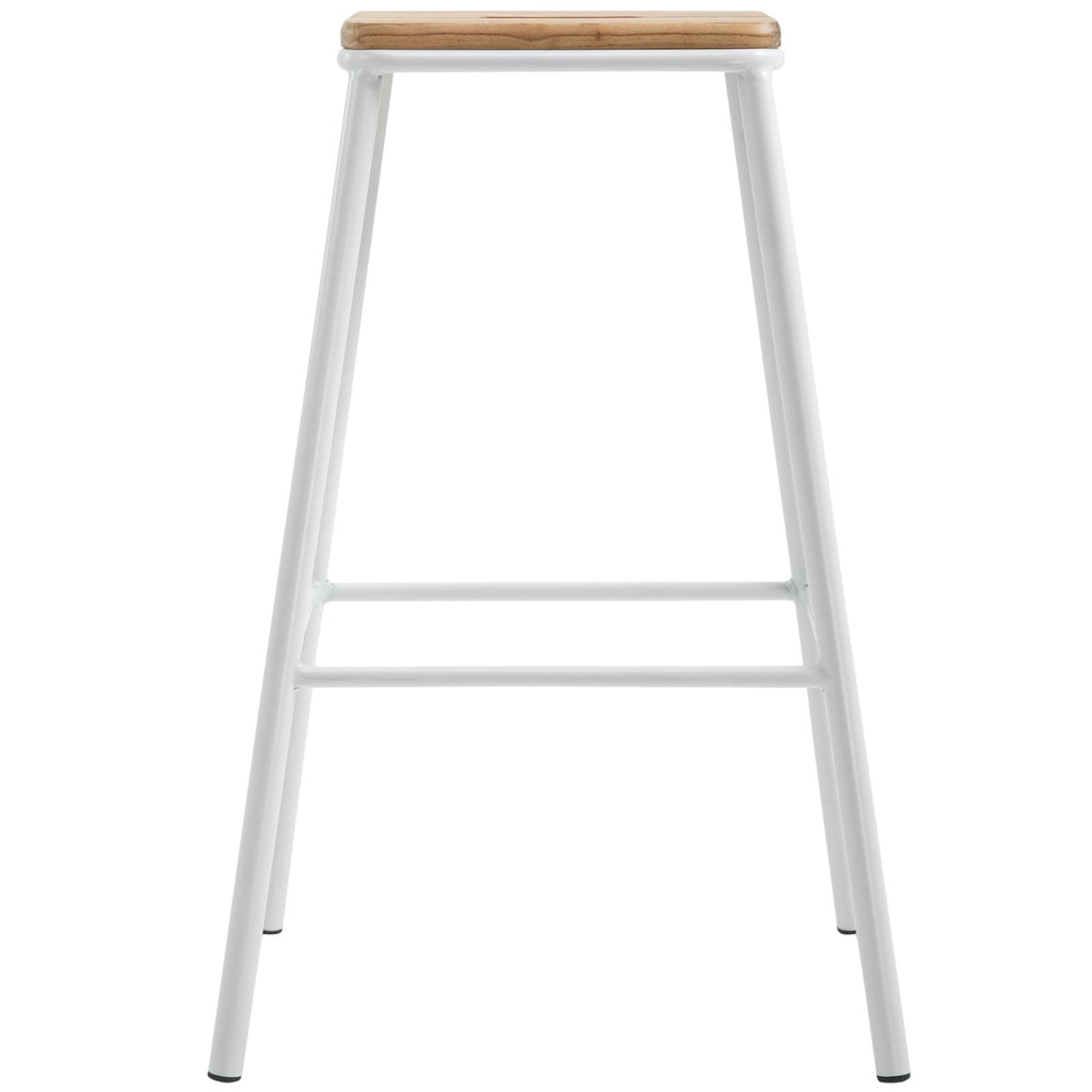 Lot de 4 tabourets de bar hauts en acier blanc et bois