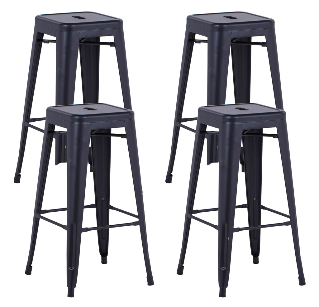 Set 4 Sgabelli da Bar Alto in Metallo Victoria Nero