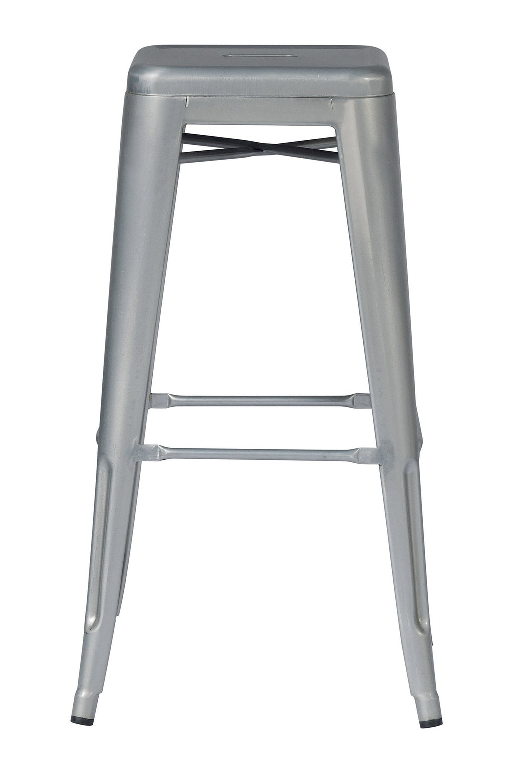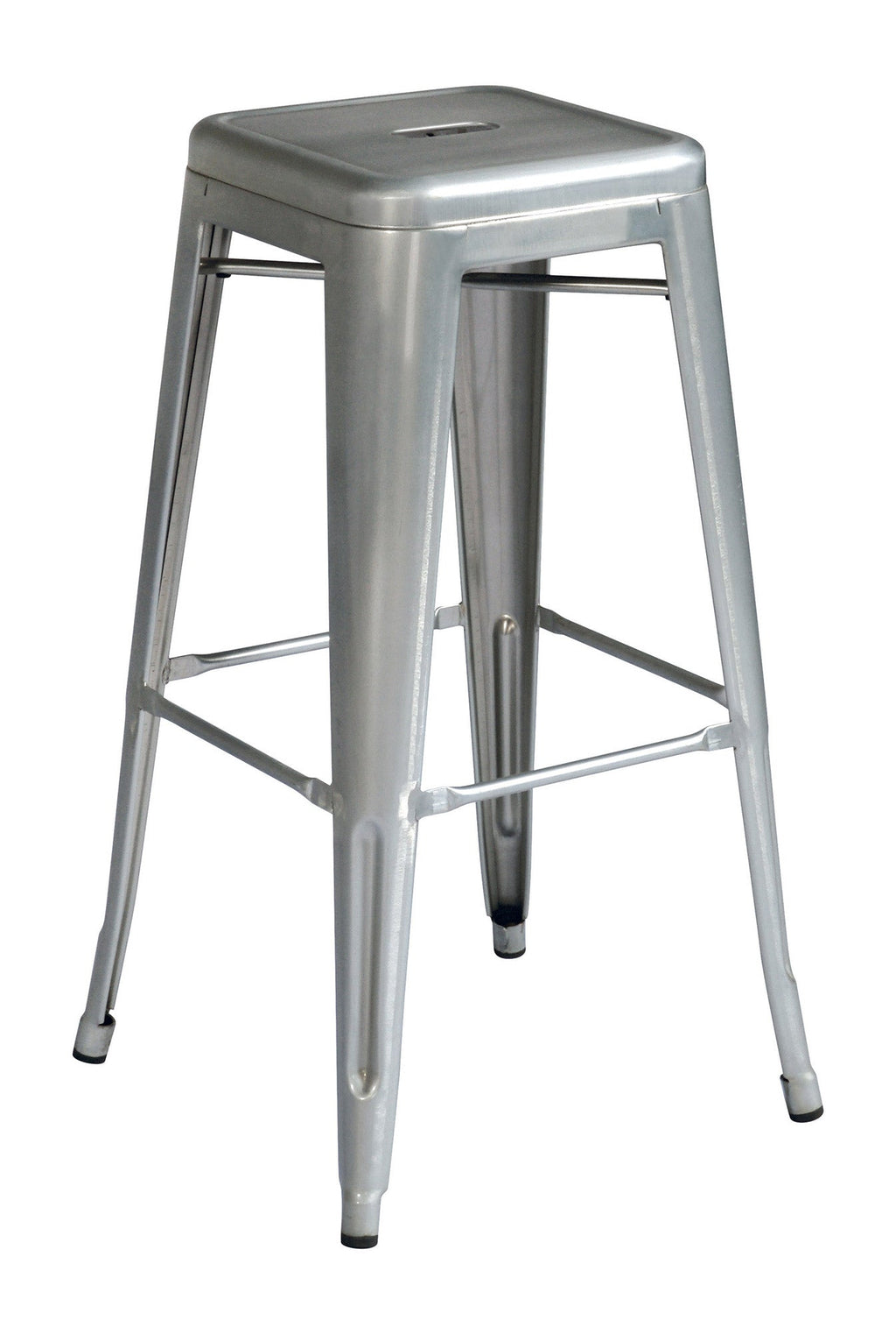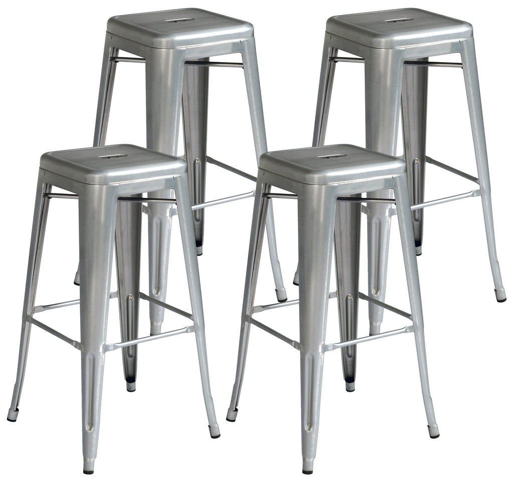 Lot de 4 Tabourets Empilables 44x44x77 cm en Tôle Galvanisée Argent