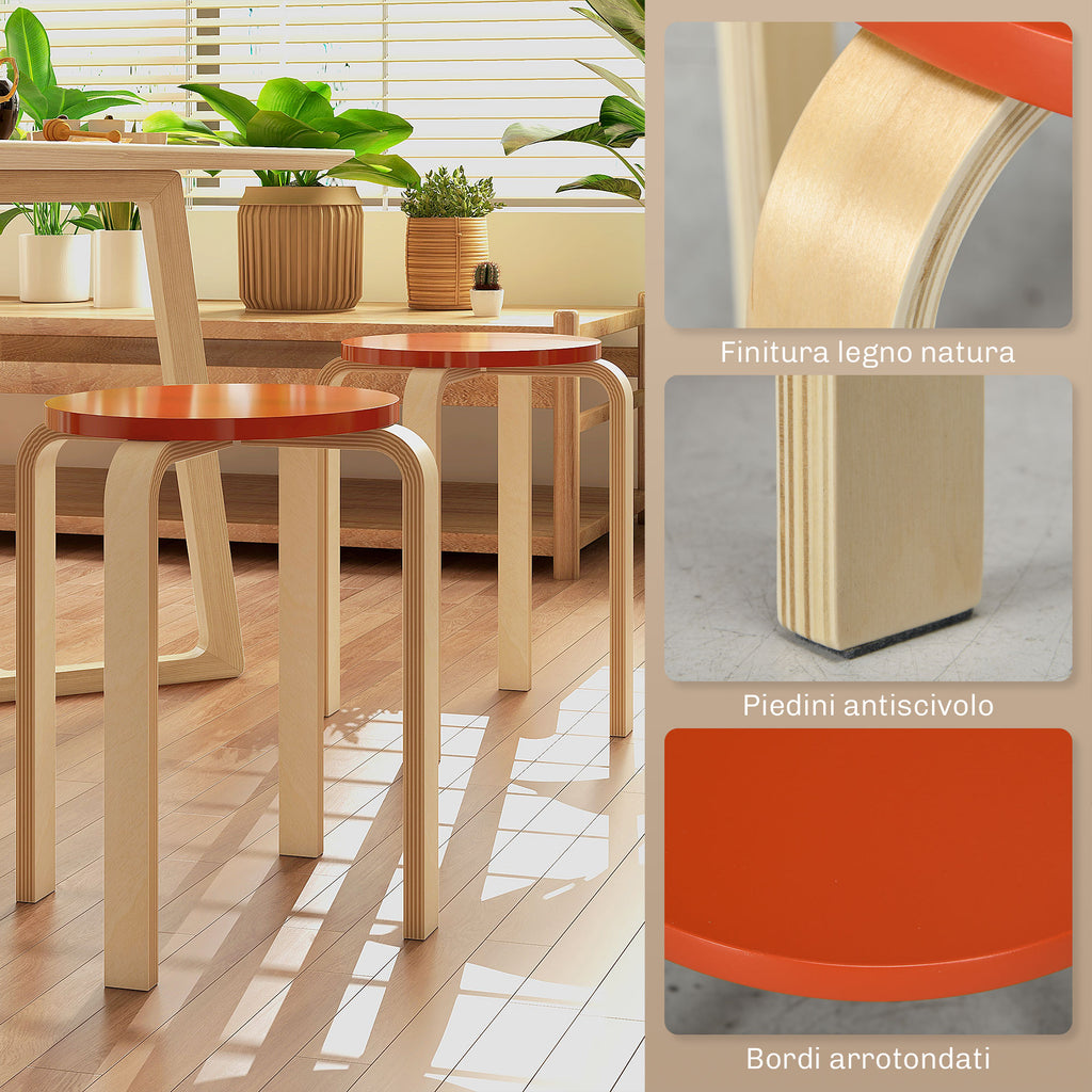 Set 4 Sgabelli Impilabili Rotondi in Legno 40x54 cm Rosso e Legno