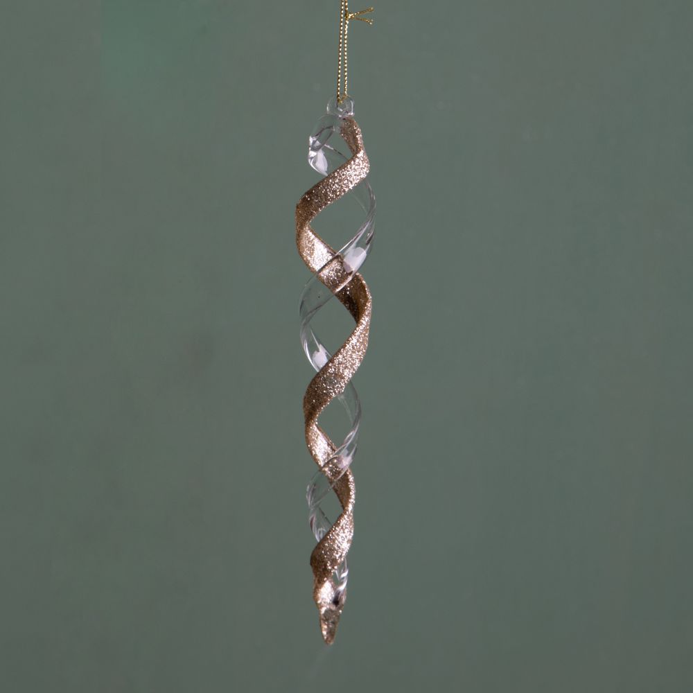 Set 4 Spirali Decorative da Appendere con Glitter 18 cm in Vetro