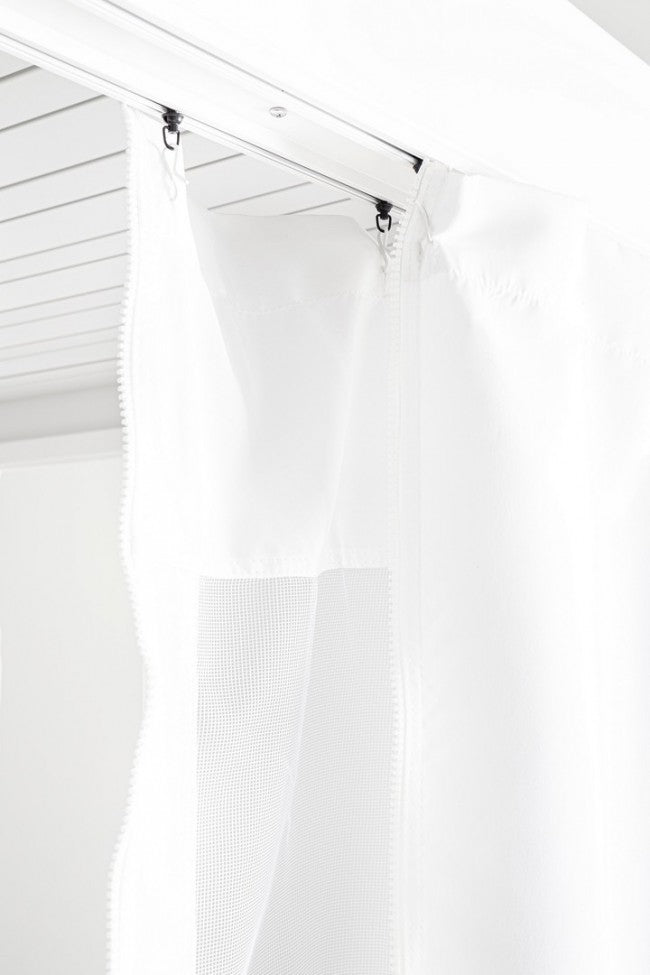- Chaque toile et moustiquaire comprend des fermetures éclair pour assurer la fermeture totale du périmètre de la pergola.