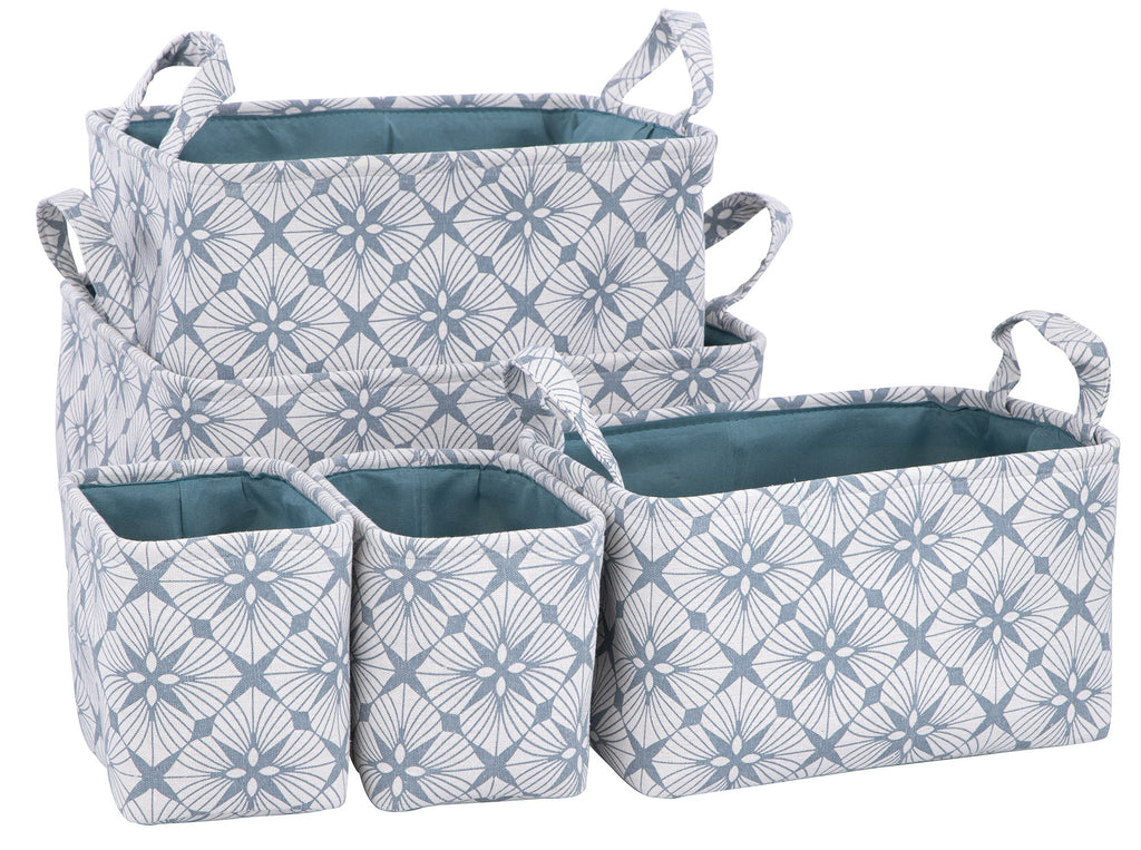 Lot de 5 paniers de rangement avec poignées en polyester bleu clair et blanc