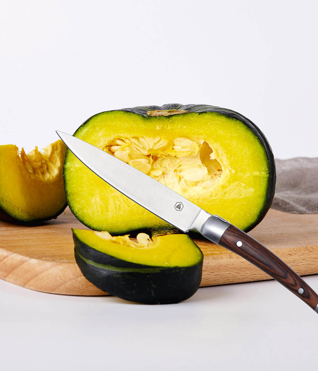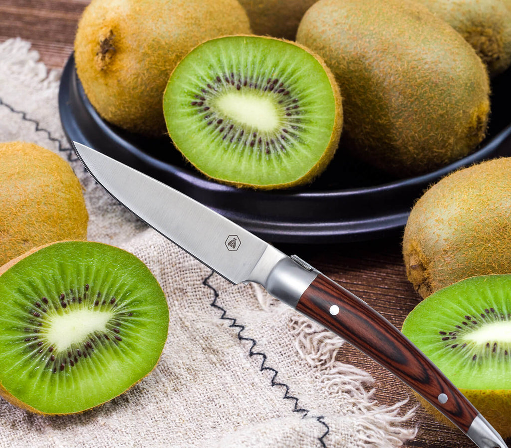 - L'ensemble comprend : un couteau à viande, un couteau à pain, un couteau polyvalent, un couteau à fruits