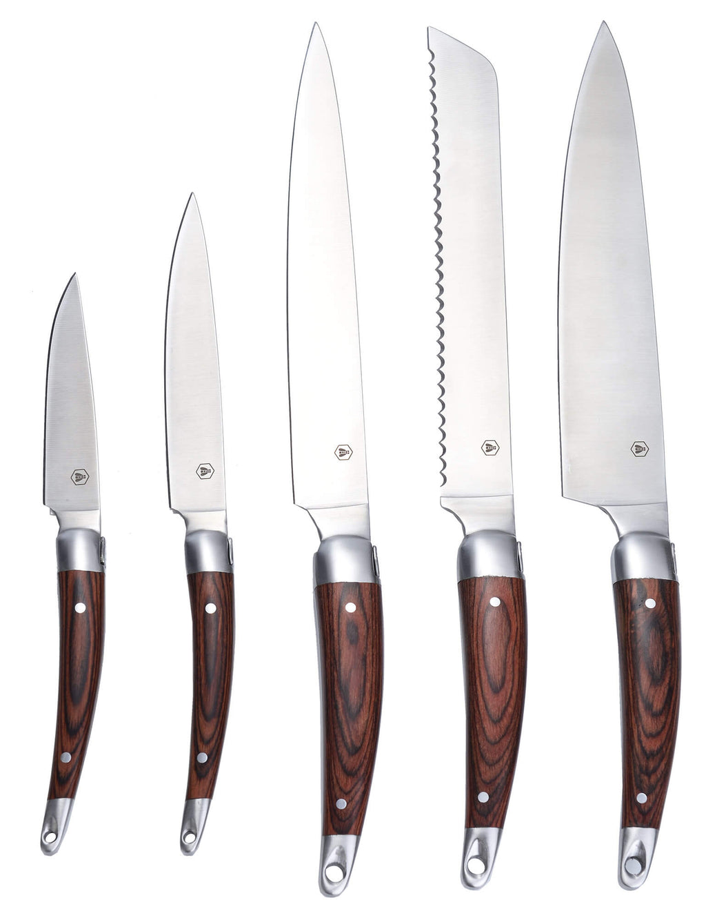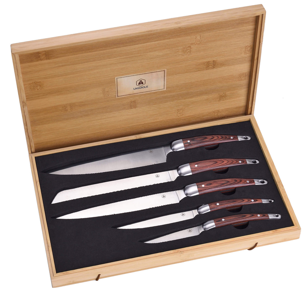 Ensemble de 5 couteaux de chef avec manche en bois et étui