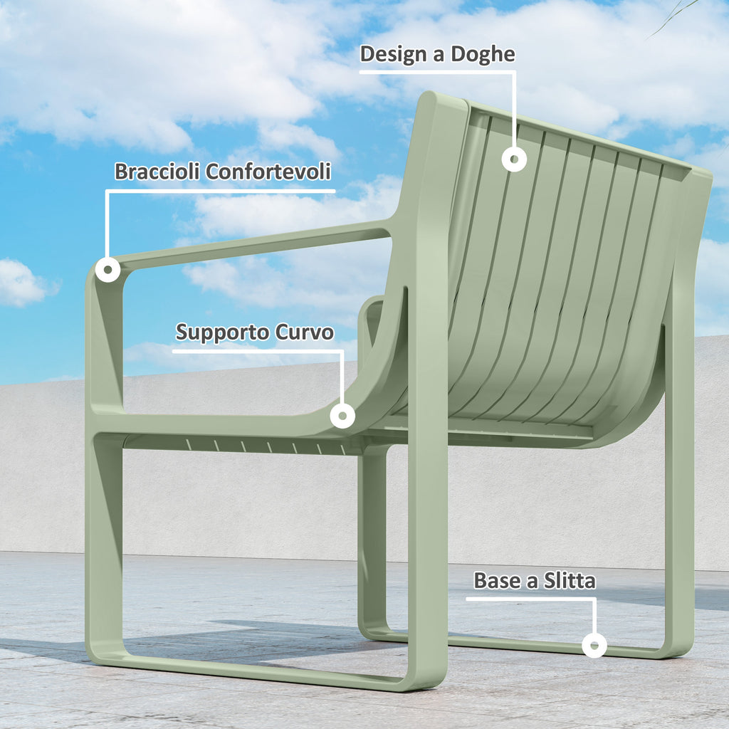 Set 5 Pezzi da Esterno Divano 2 Poltrone e 2 Tavolini in Polipropilene a Doghe Verde