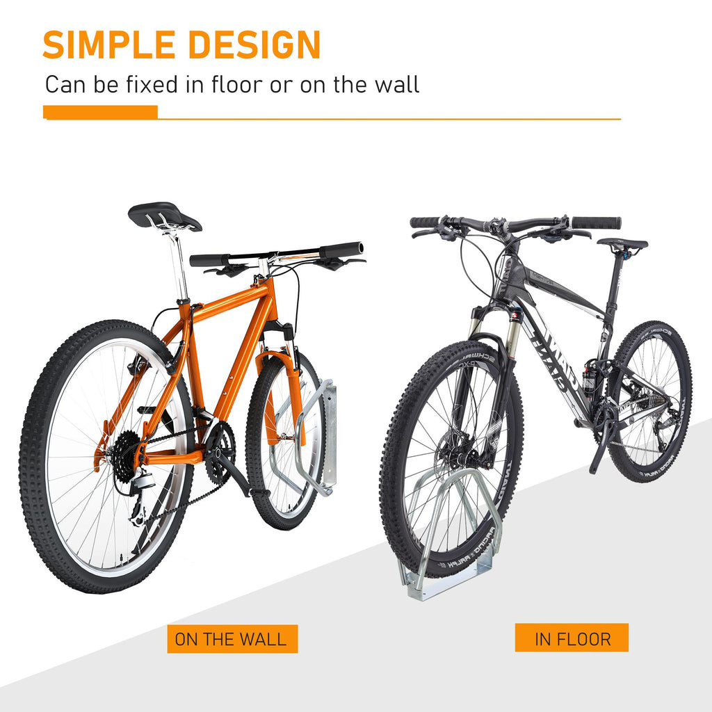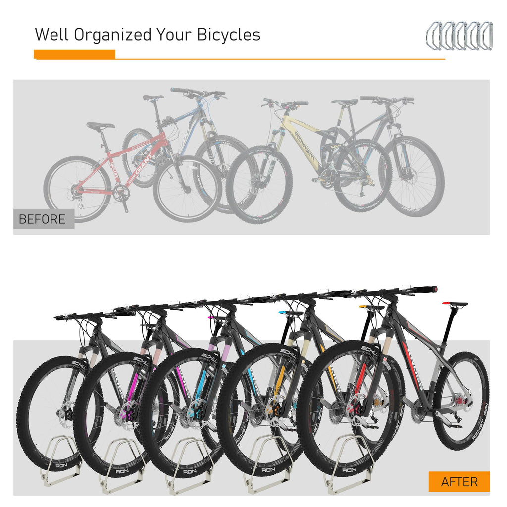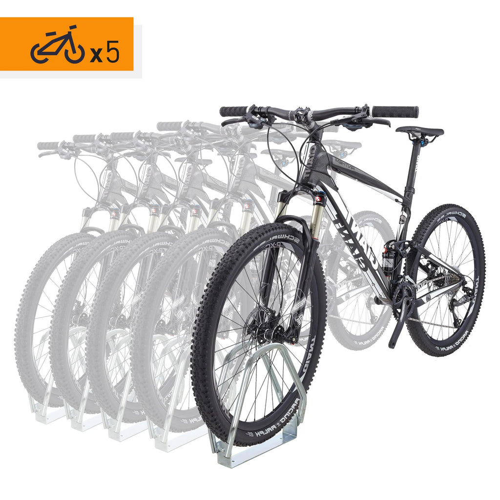 Vous ne savez jamais où garer votre vélo ? Avec ce rack vous disposez de 5 stations disponibles pour vous et votre famille ! Fabriqué en acier avec une surface galvanisée et antirouille, vous pouvez l'installer au sol ou le fixer au mur, et il est compatible avec la majorité des pneus de vélo. Vous pouvez le démonter en cinq supports individuels. Installez ce porte-vélos dans votre cour, garage ou jardin et offrez une nouvelle maison à vos vélos !