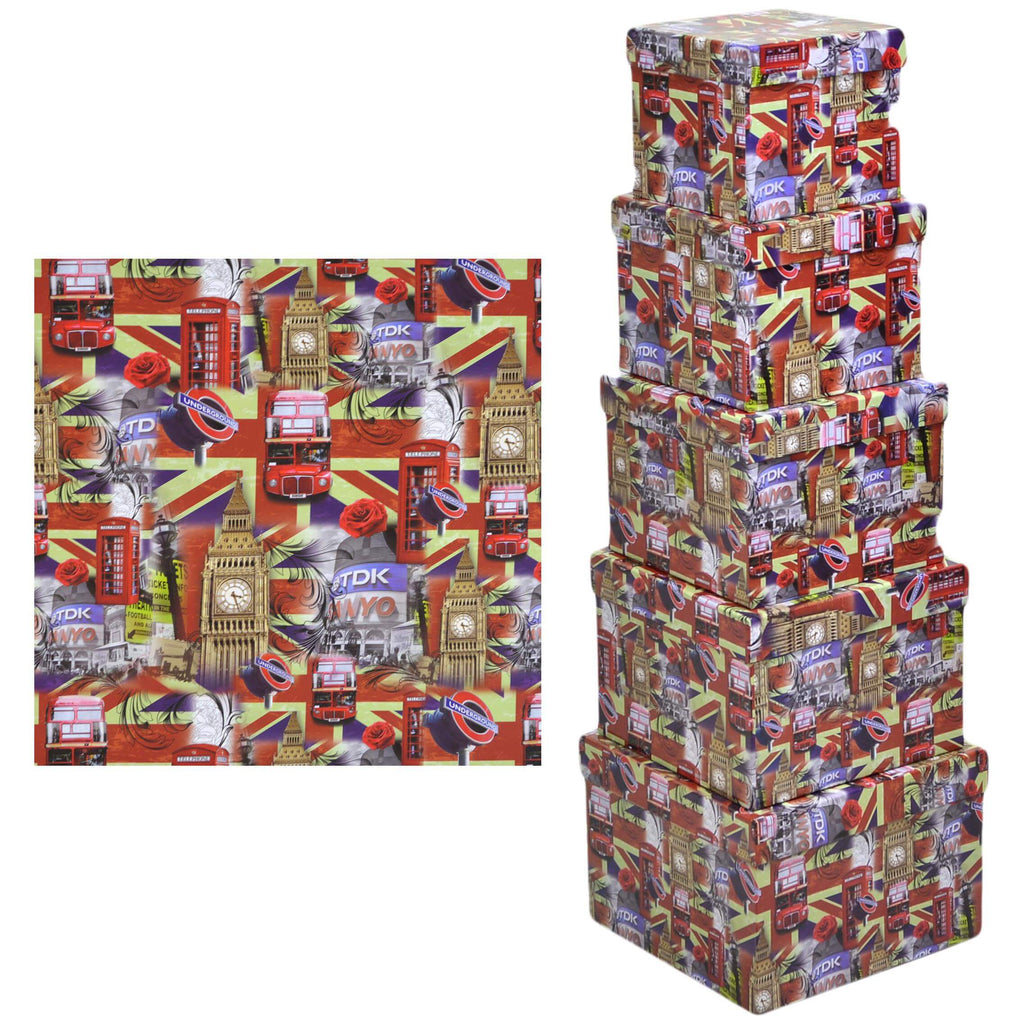 Lot de 5 boîtes carrées en carton London