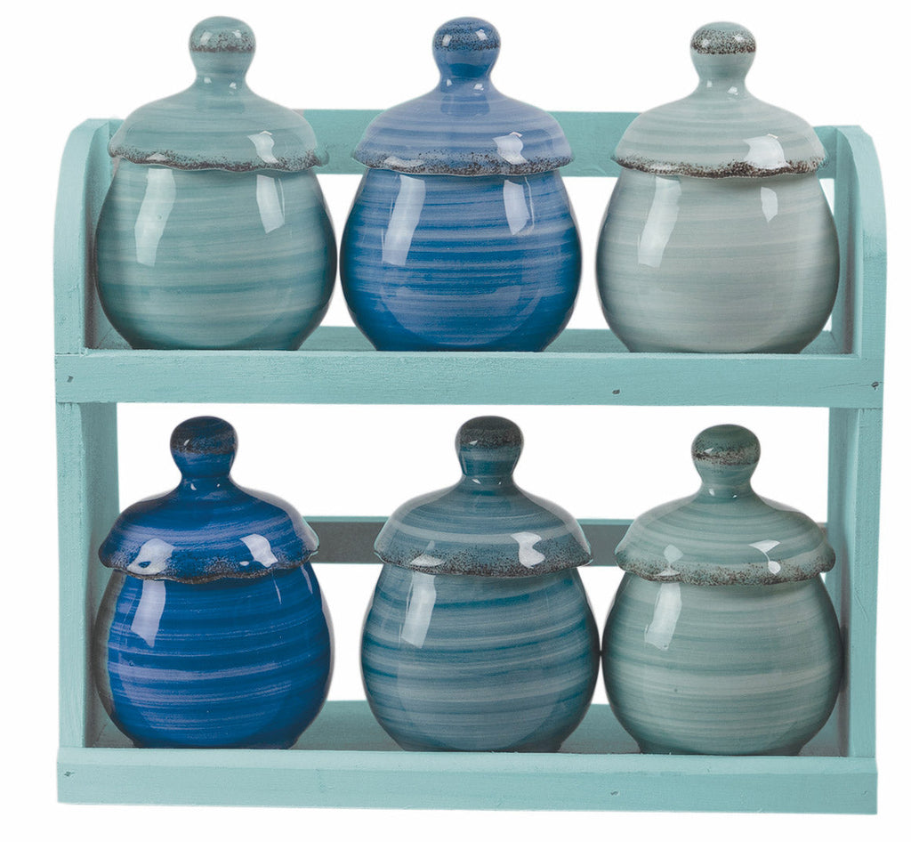 Ensemble de 6 pots en céramique avec support en bois Villa d'Este Home Tivoli 1996 Baita