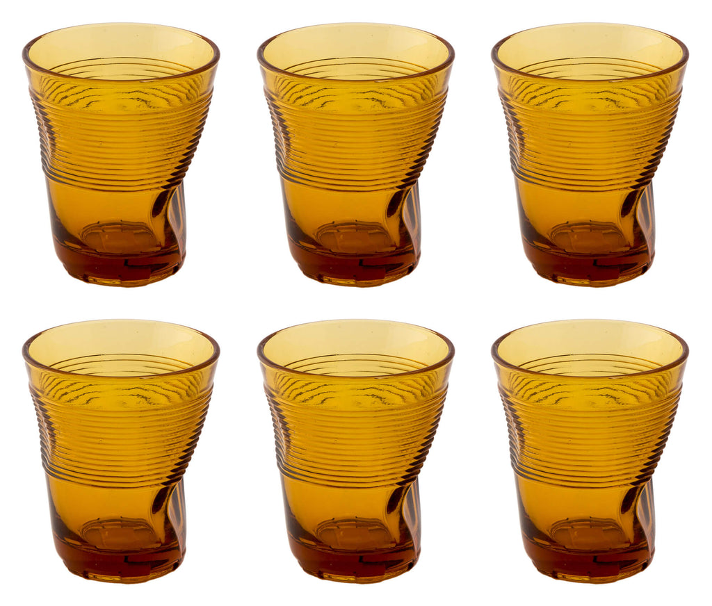 Coffret de 6 Verres Froissés 36 cl Ø9 cm en Verre Pressé Ambré Kaleidos