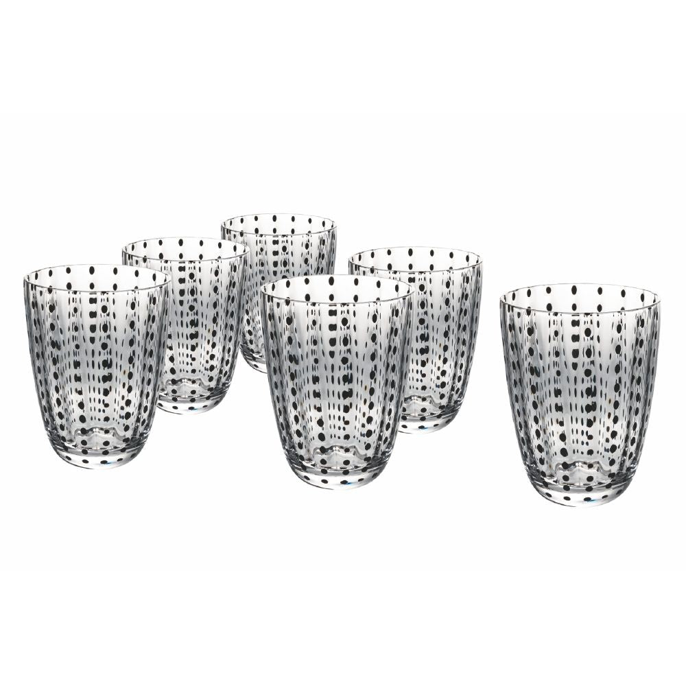 Lot de 6 verres à eau Kalahari en verre transparent Villa d'Este Home Tivoli à pois noirs