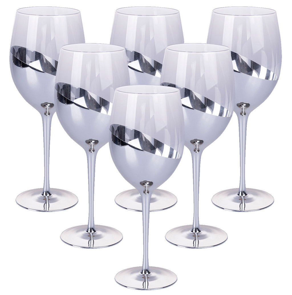 Ensemble de 6 Gobelets Chic en Verre Transparent et Argenté VdE Tivoli 1996