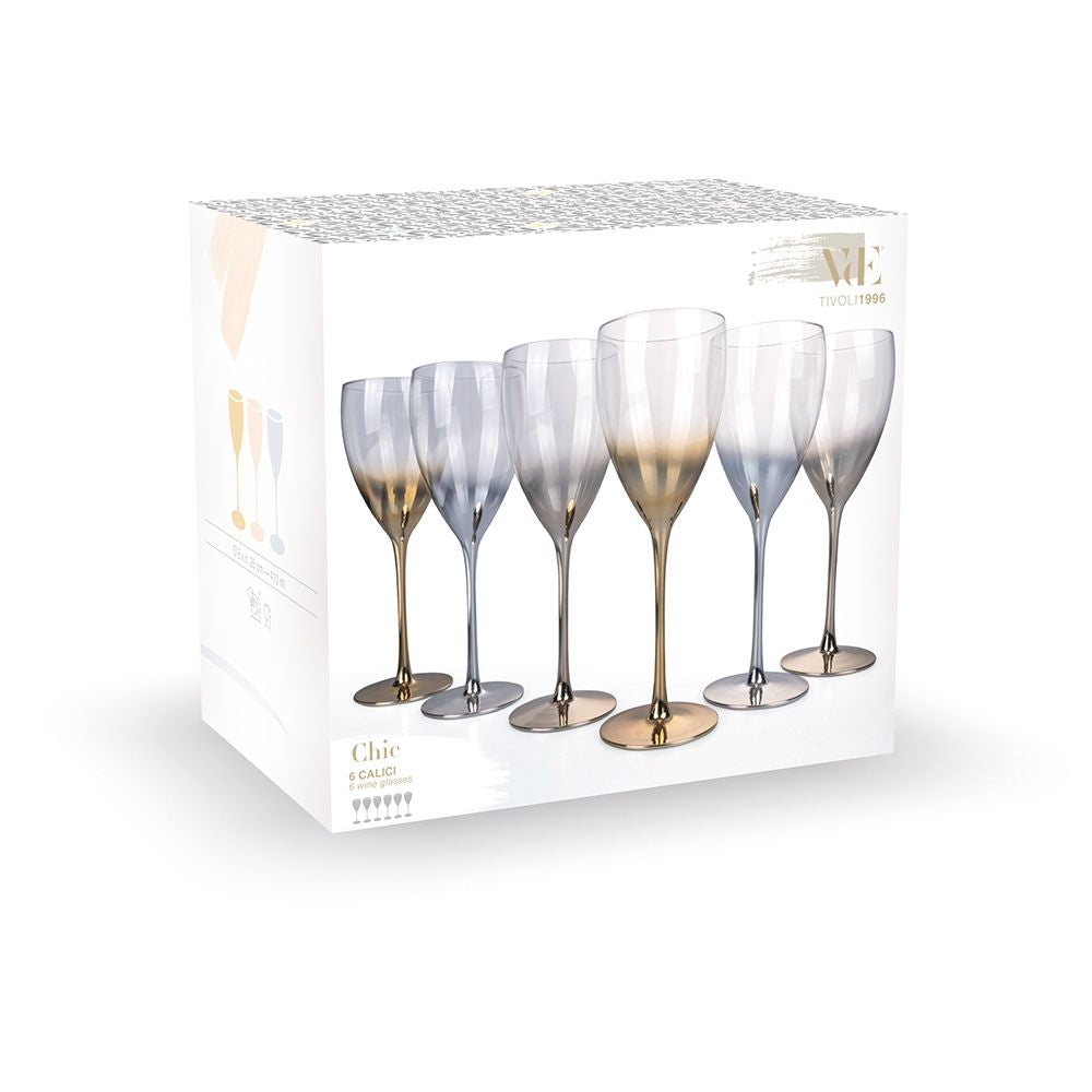 Coffret de 6 Verres à Vin Très Chic en Verre à Champagne VdE Tivoli 1996