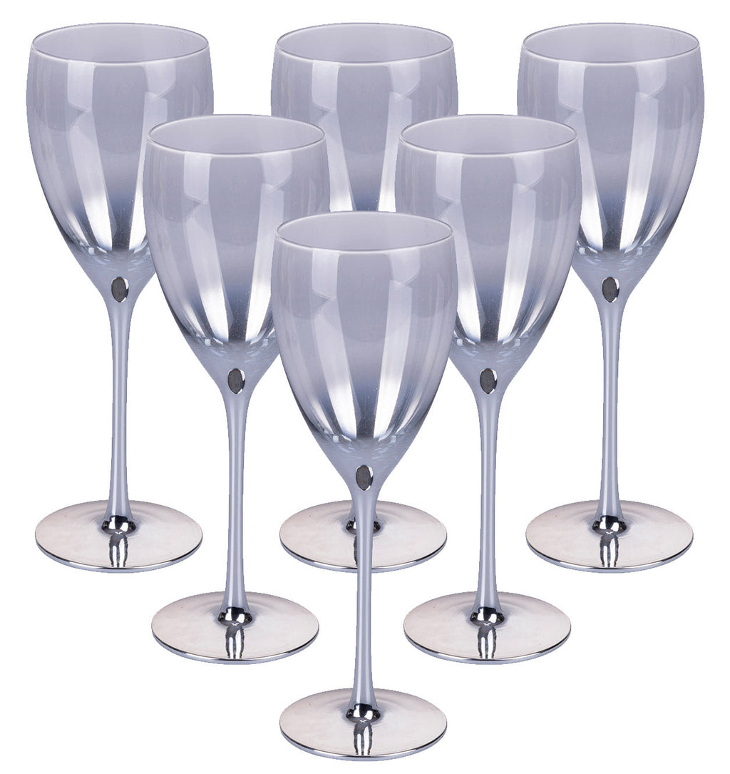 Coffret de 6 Verres à Vin Très Chic en Verre Argenté VdE Tivoli 1996