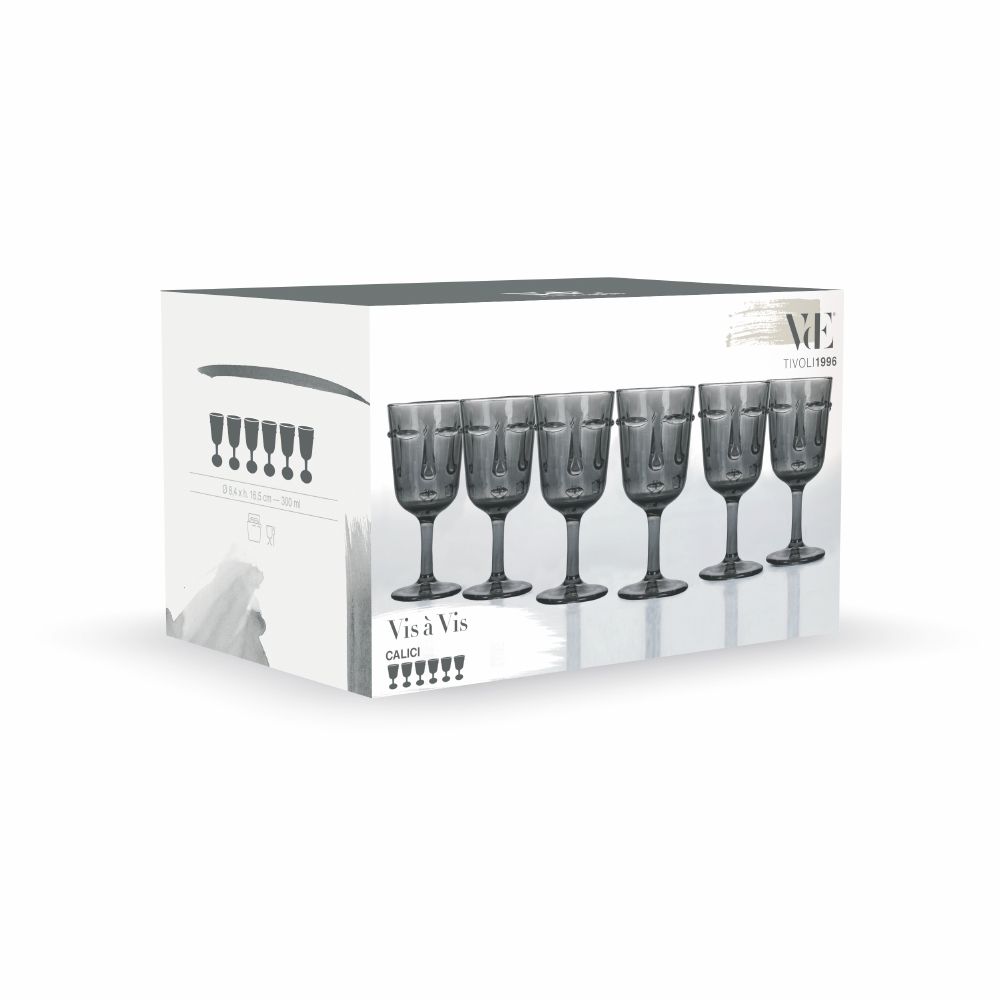 Ensemble de 6 verres à vin Vis à Vis en verre gris foncé VdE Tivoli 1996