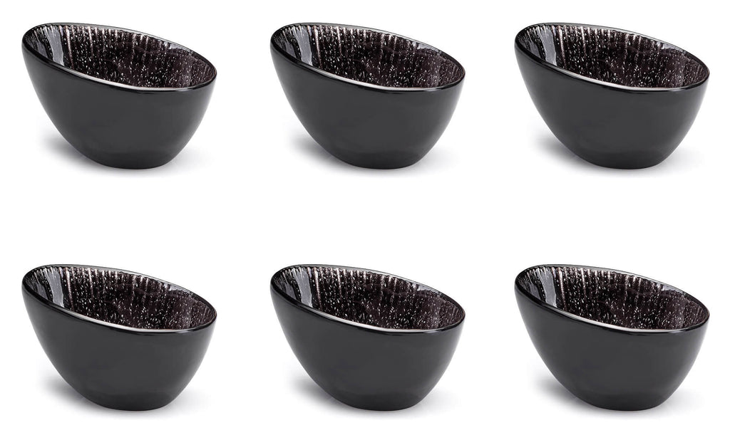 Set 6 Bols Obliques 10,5x7,5x6 cm en Grès Kaleidos Sirius Noir