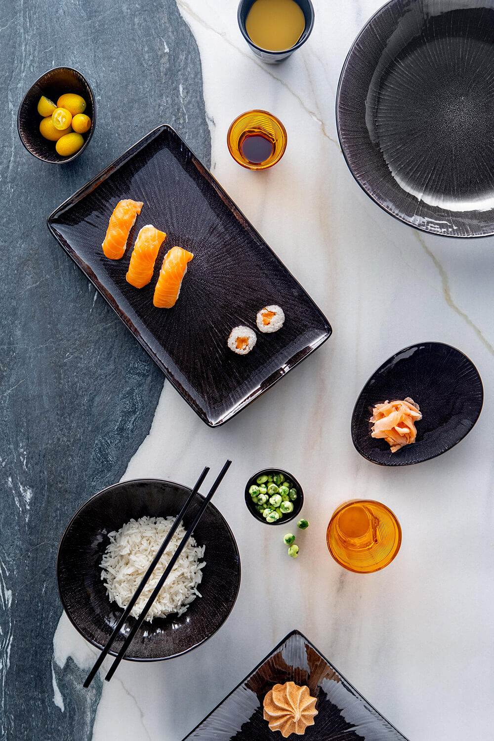 Sirius est une collection en grès qui fusionne le monde oriental avec celui de l'astronomie. En fait, la décoration rappelle une étoile dans le ciel nocturne, d'où le nom Sirius (l'étoile la plus brillante). Les formes géométriques des produits rappellent le placage oriental et la mise en place japonaise et sont donc parfaites pour les amateurs de sushi ou de géométries ordonnées typiques de ce monde.