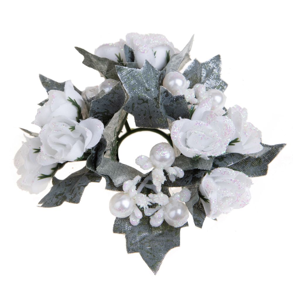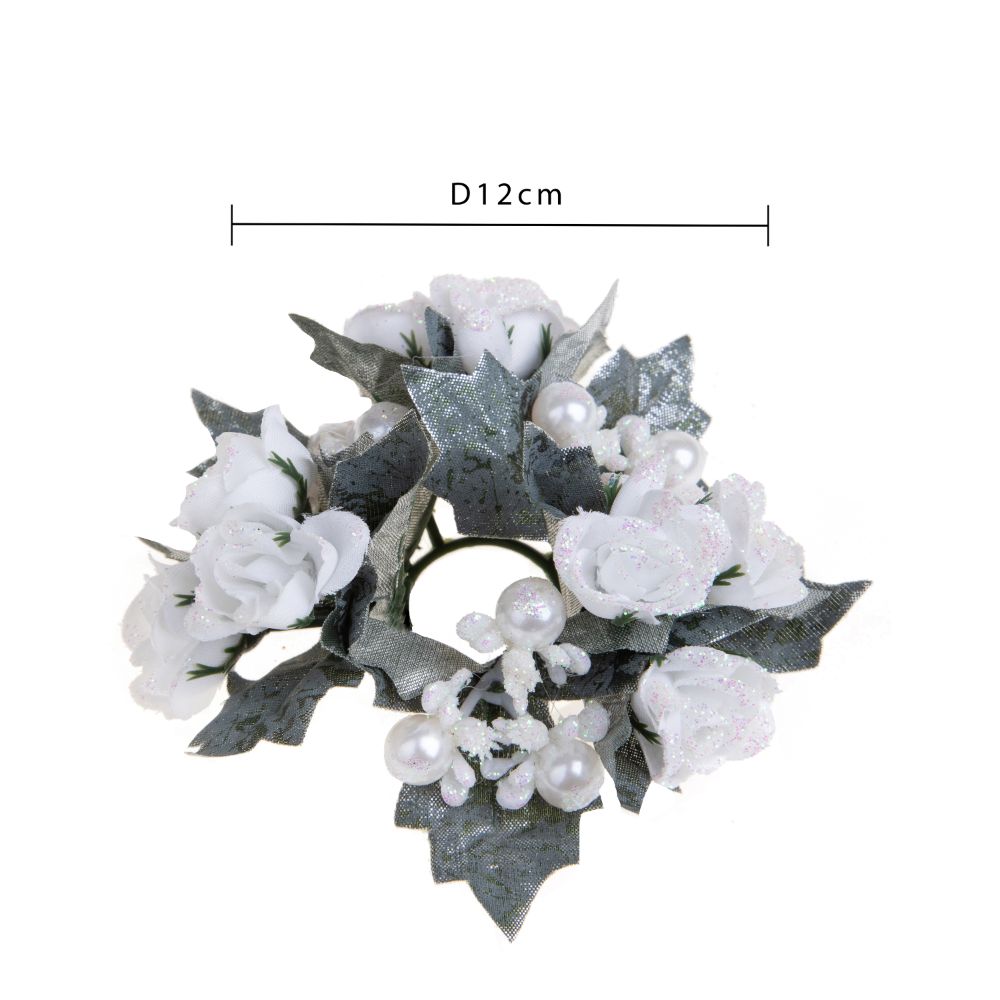 Set 6 Giro Candela Rose con Perle Ø 12 cm in Sintetico