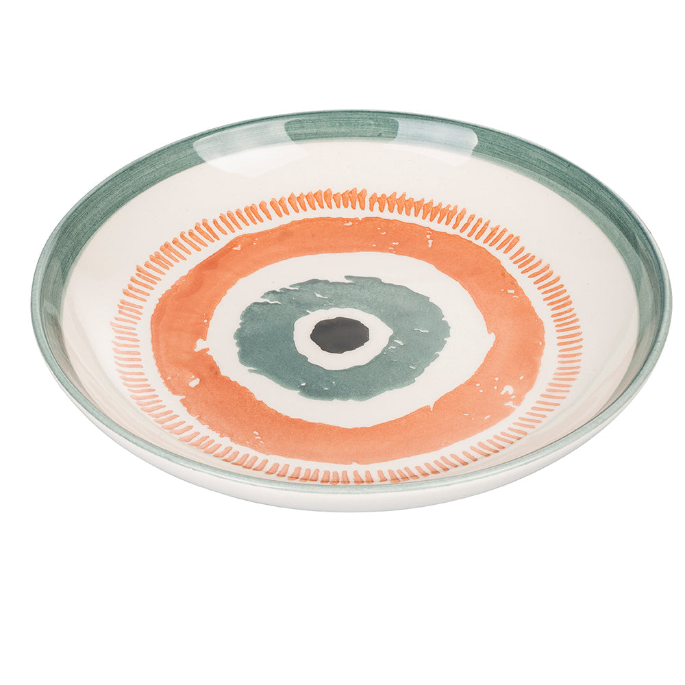 Lo stile coastal ha mille sfumature e declinazioni e la collezione Occhio Marino Arancio si propone di esaltare le tonalità di un tramonto in riva al mare. I decori di questa linea arricchiscono le superfici in dolomite dei complementi, creando sulla mise en place un effetto magnetico. Le cromie si alternano nei toni dell azzurro, e del bianco del mare e dell arancione confluendo in decori concentrici che creano un effetto armonioso ed accattivante. La collezione Occhio Marino Arancio sa di tramonto, sa di calore e sa di stile firmato Villa D Este.