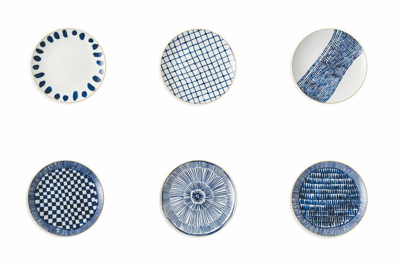 Set de 6 Assiettes à Fruits en Porcelaine Décor Bleu Ø19,5 cm Villa d'Este Home Tivoli 1996 Bleu Masai
