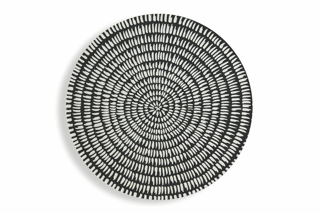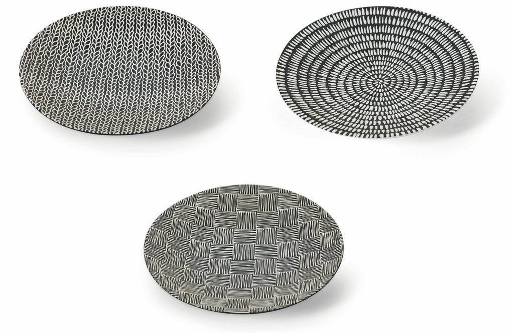 Lot de 6 assiettes plates en porcelaine, décor tribal en relief Ø28,5 cm Villa d'Este Maison Tivoli 1996 Tombouctou