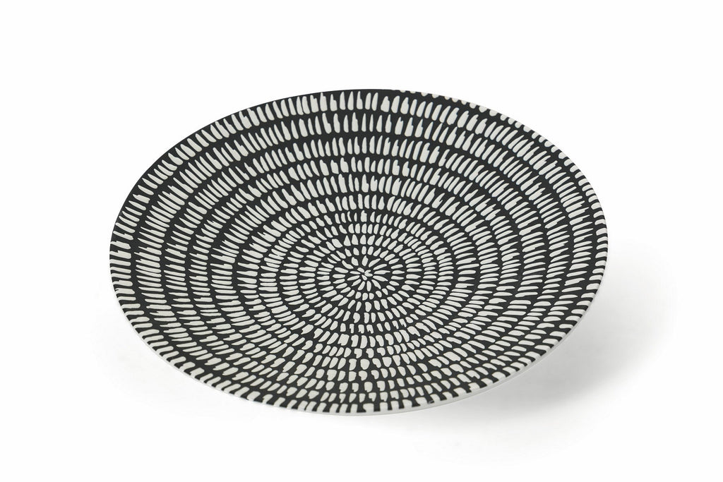 La ligne Timbuktu propose à la table et à la cuisine une vaste gamme d'assiettes et de bols aux références tribales évoquant les gravures rupestres. Le mélange incomparable de noir et de blanc qui combine des profils toujours nouveaux, en gardant l'authenticité intacte.