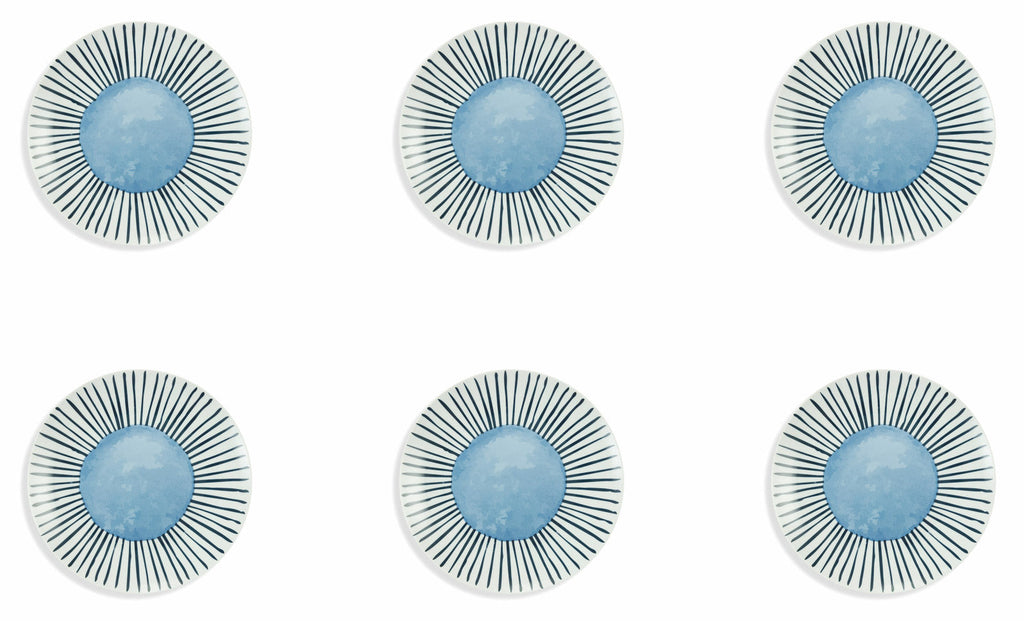 Set de 6 assiettes plates Ø27x2,5 cm en porcelaine VdE Tivoli 1996 Marea Rghe