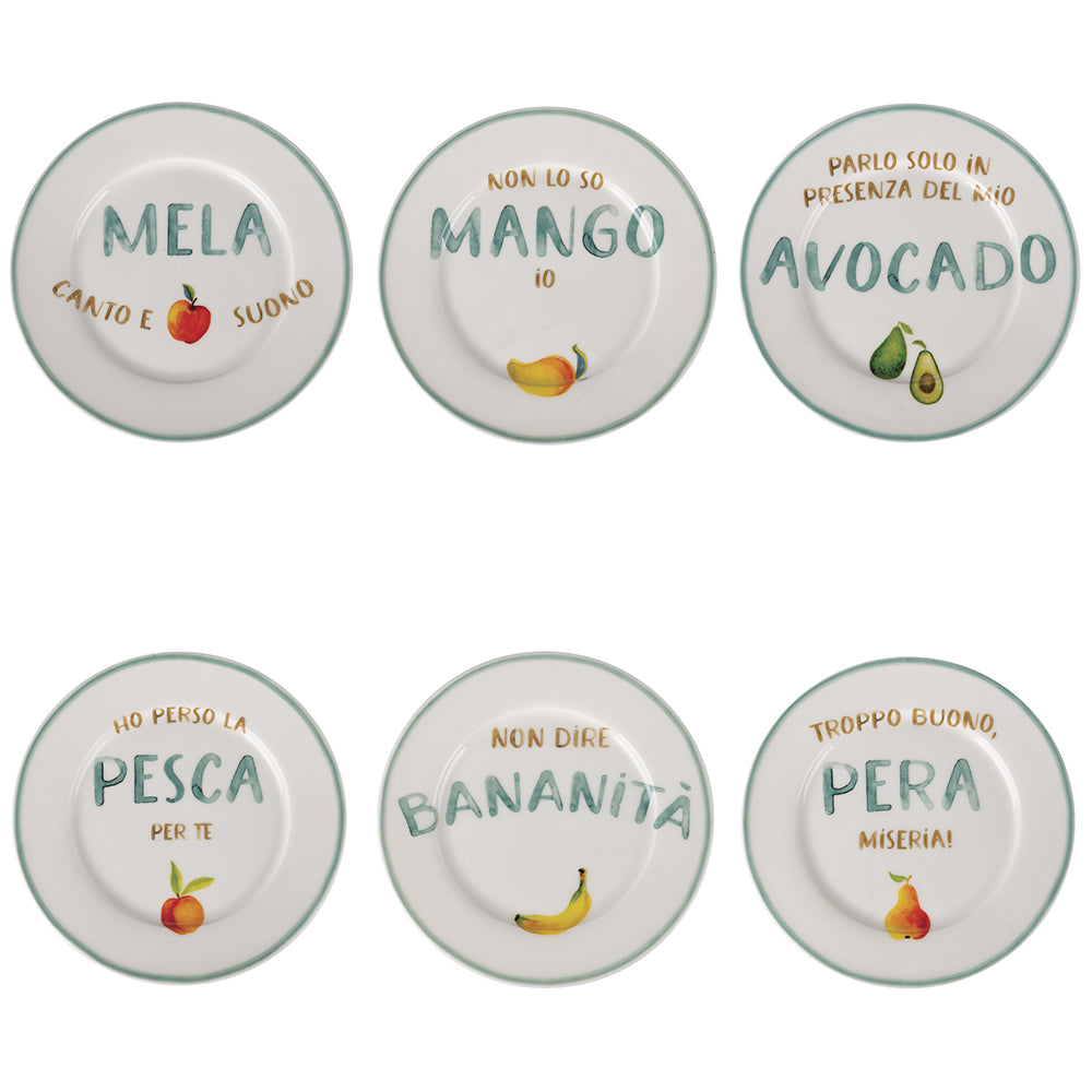 - Disponible en 6 assortiments : APPLE chantant et Apple sound ; Je ne sais pas, je le mange moi-même ; Je parle uniquement en présence de mon AVOCAT ; J'ai perdu PÊCHE pour toi; Ne dites pas BANANITA ; Trop bonne POIRE misère