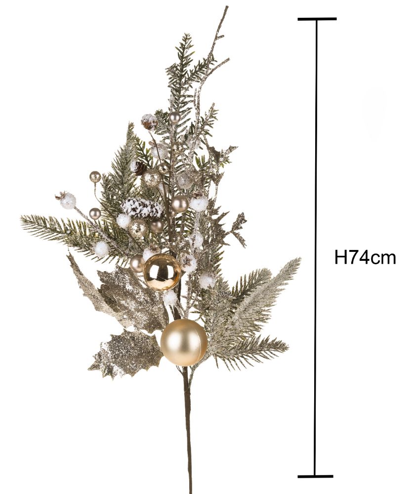 Lot de 6 branches de sapin artificiel avec boules en plastique 74 cm
