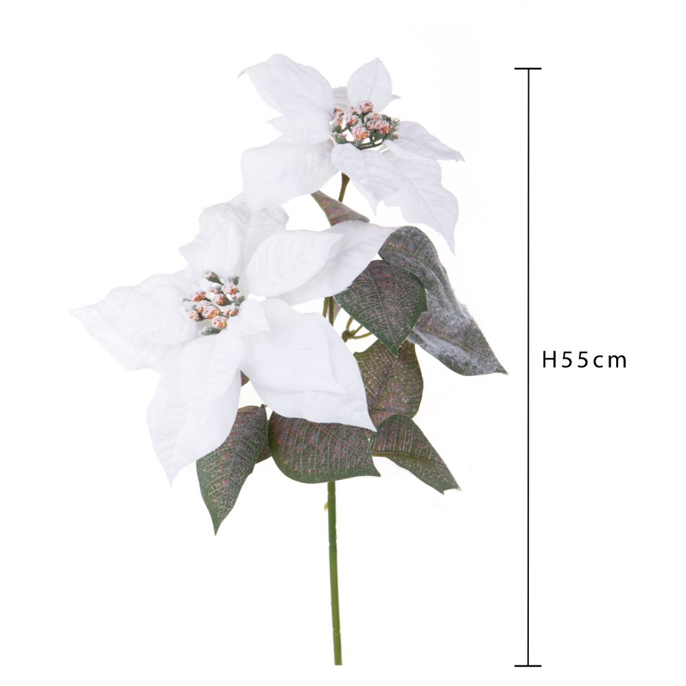 Set 6 Rami Artificiali Stella Natale con Neve 55 cm in Sintetico Bianco