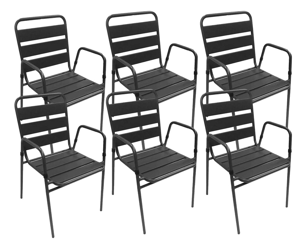 Lot de 6 Chaises de Jardin en Acier Krystin Anthracite