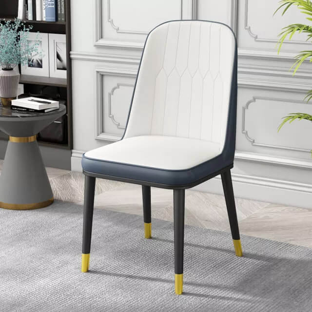 La structure interne et les pieds sont en fer, de plus les joints sous les pieds garantissent une bonne stabilité et résistance au bruit, de plus ils n'abîment pas le sol, au contraire ils protègent et empêchent la chaise de glisser. La bordure en cuir écologique de couleur contrastante qui parcourt tout le périmètre de la chaise est magnifique.