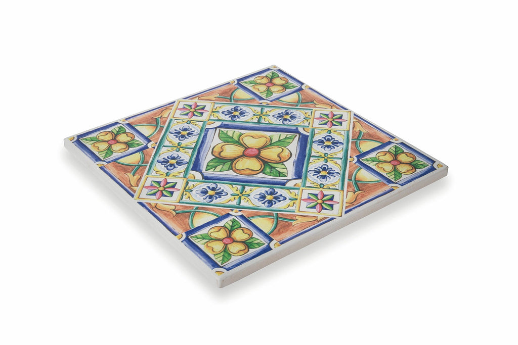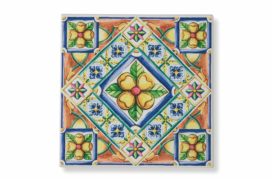 Set de 6 Dessous de Plat Carrés en Céramique avec Fond en Liège 16x16 cm Villa d'Este Home Tivoli 1996 Costiera