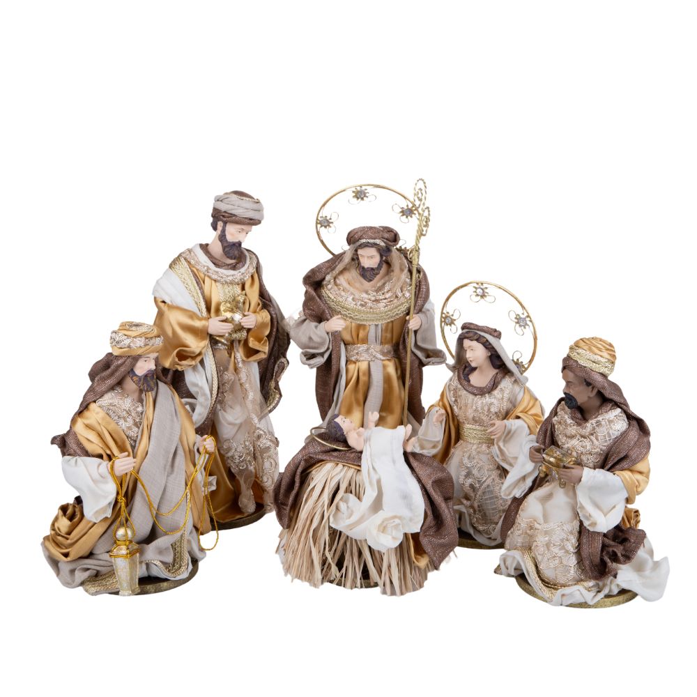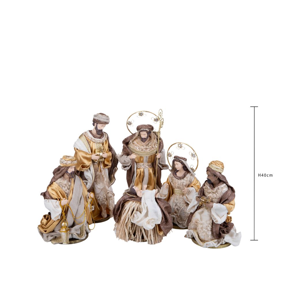 Lot de 6 figurines de la Nativité de Noël 40 cm en tissu doré et résine