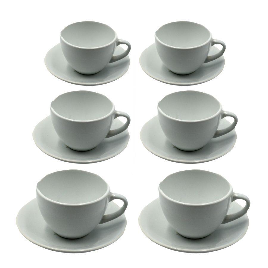 Set de 6 Tasses à Thé avec Soucoupe Ø9,5xh7 cm en Grès Cérame Blanc Romeo