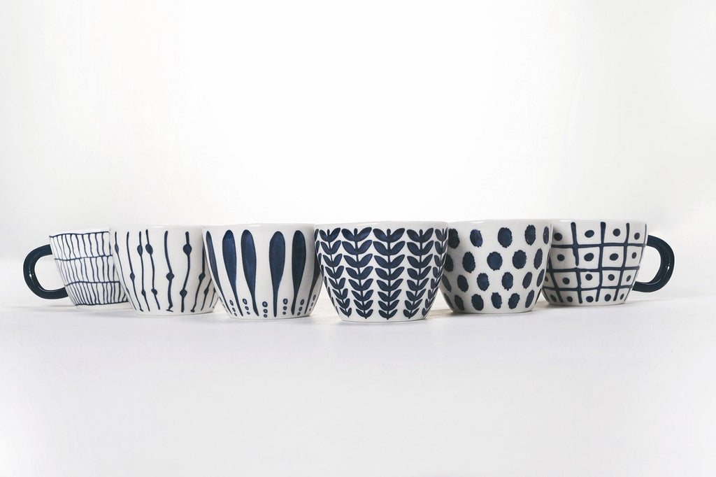 Set de 6 Tasses à Café en Grès 90 ml Villa d'Este Home Tivoli 1996 Bleu Masai