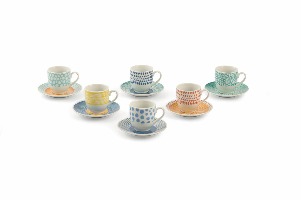 Set de 6 Tasses à Café avec Soucoupe en Porcelaine VdE Tivoli 1996 Marea