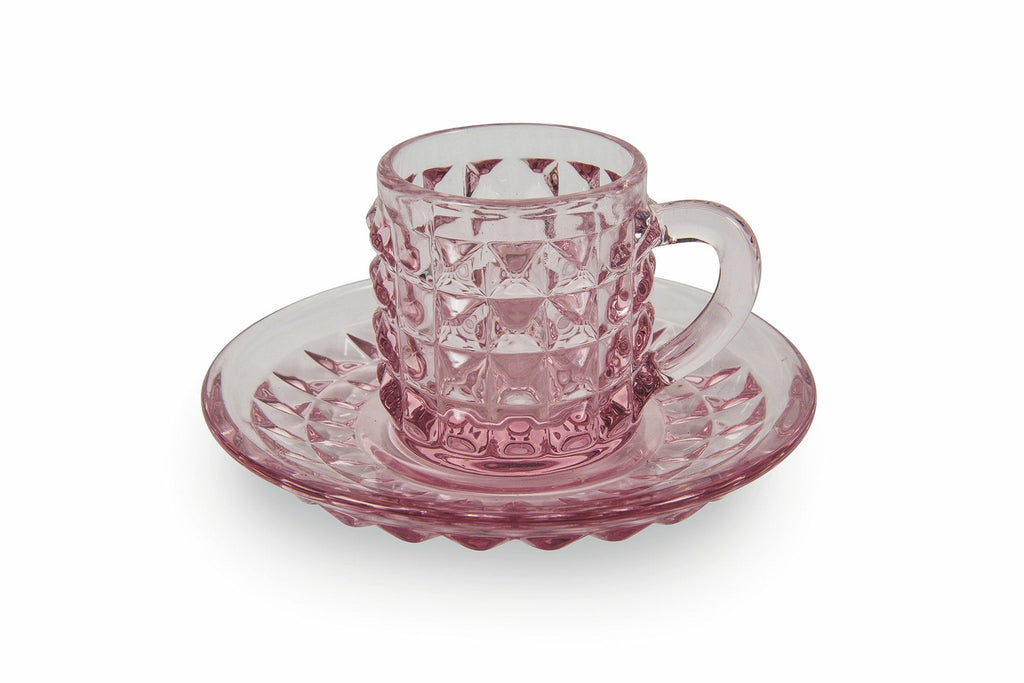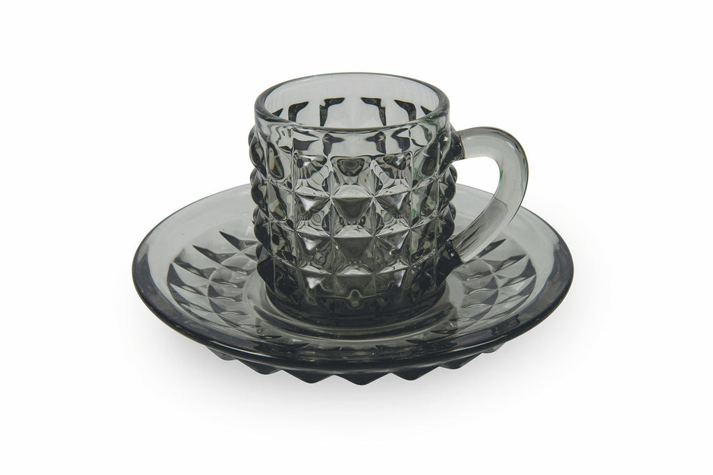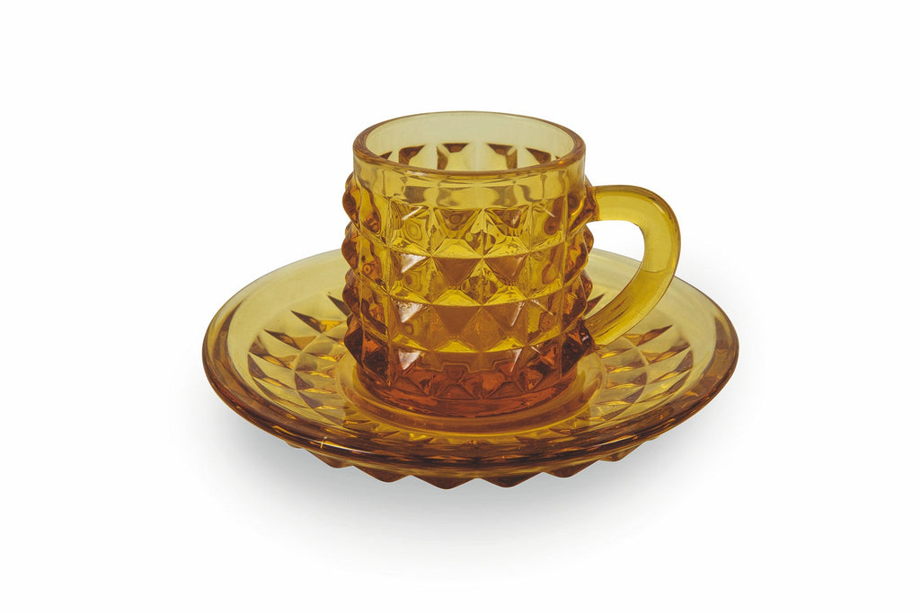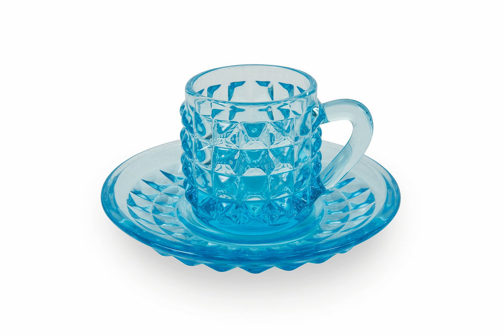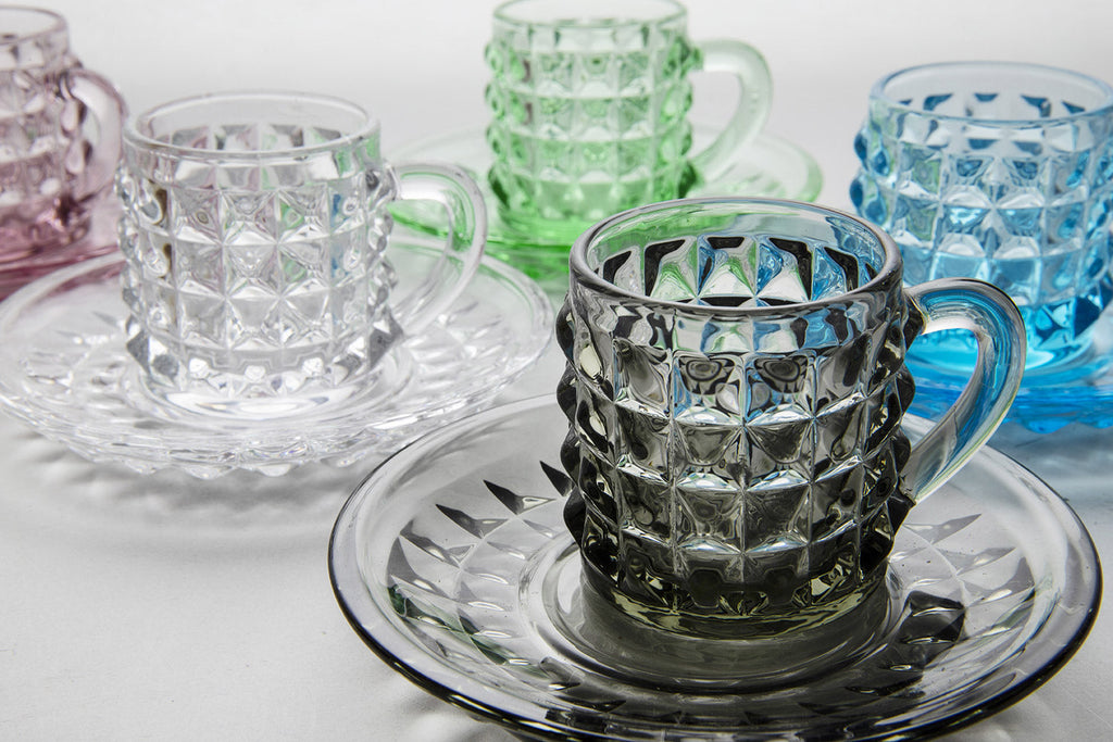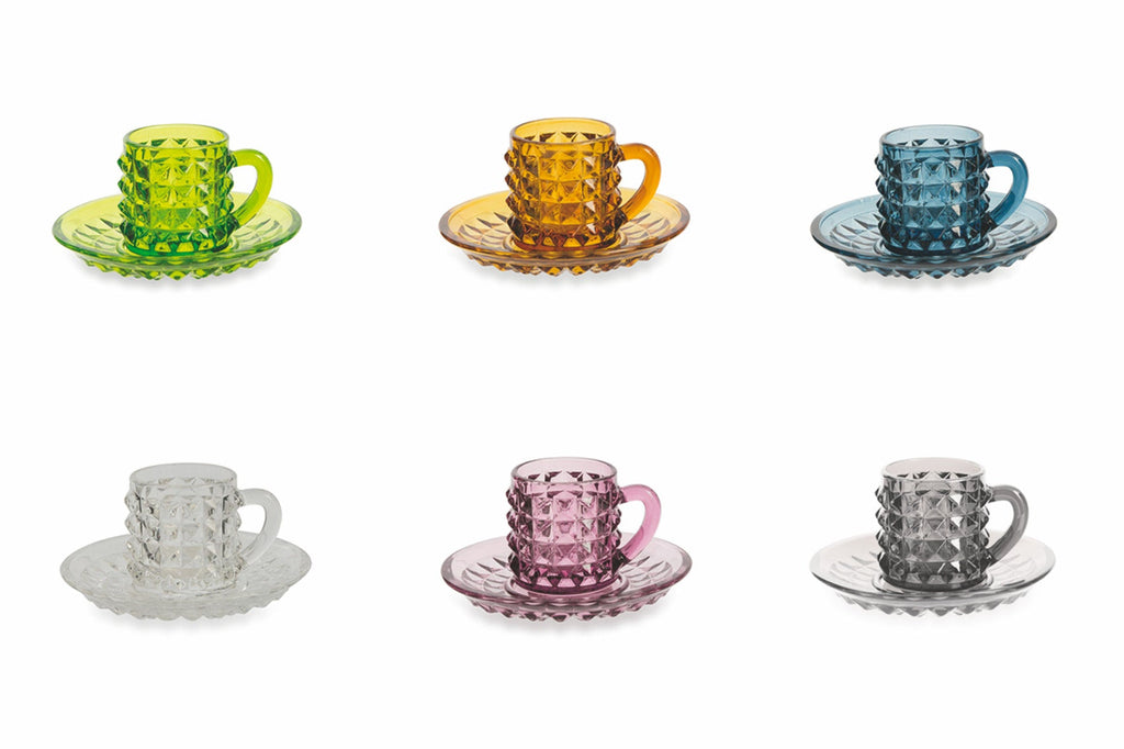 Ensemble de 6 tasses à café en verre coloré avec soucoupe 90 ml VdE Tivoli 1996 Diamond