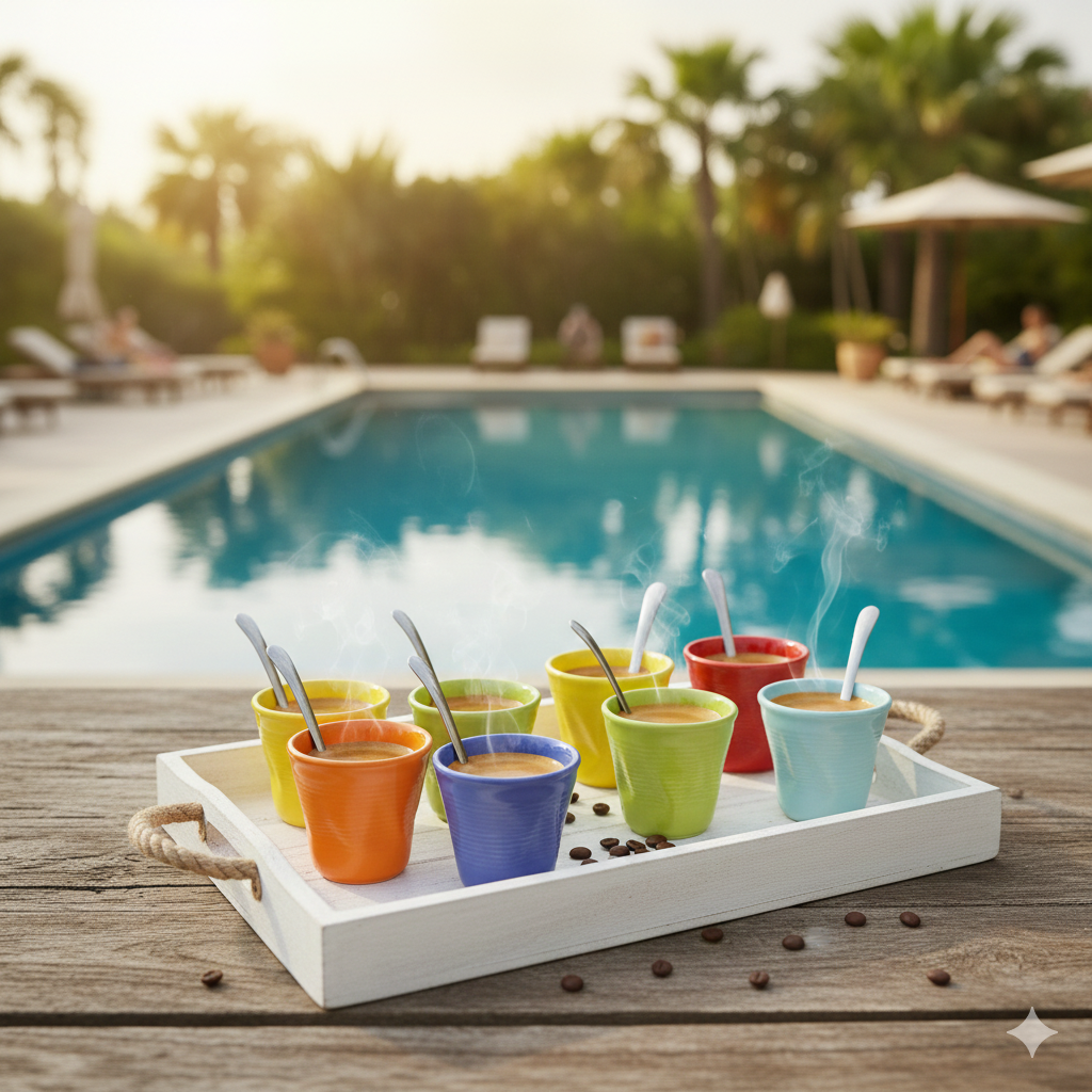 Set de 6 tasses à café froissées en grès + cuillères multicolores Kaleidos